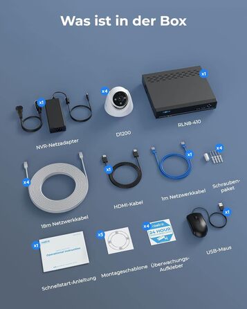 Набір камер спостереження Reolink 12 МП PoE на відкритому повітрі, 8-канальний NVR з жорстким диском 2 ТБ для цілодобового запису та 4-кратні купольні IP-камери з виявленням людини/автомобіля, 2-стороннім аудіо, прожекторами, RLK8-1200D4-A