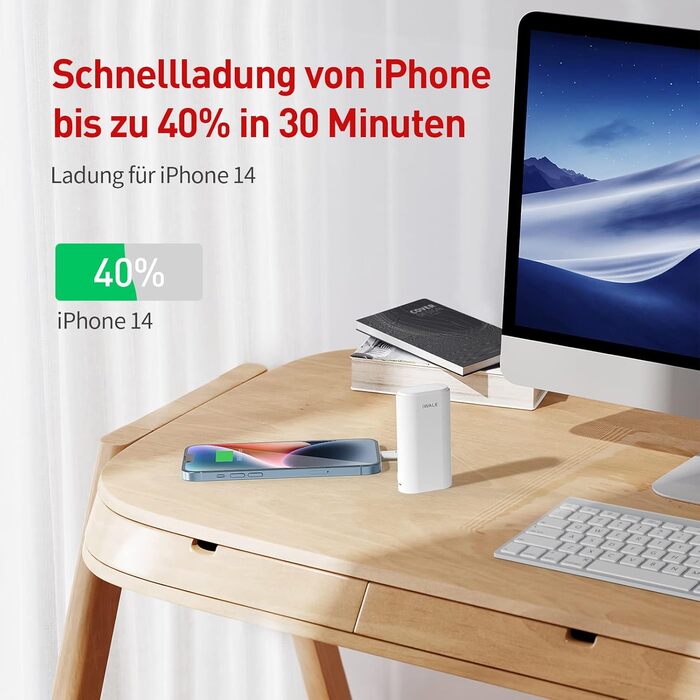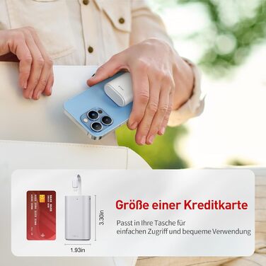Портативний зовнішній зарядний пристрій з інтегрованим кабелем Mini Fast Charge Powerbank Сумісний з iPhone 14,14 Pro Max,13,12 Mini,11,XS,XR,8,7,AirPods, iPod,Samsung та іншими Білий, 9000mAh