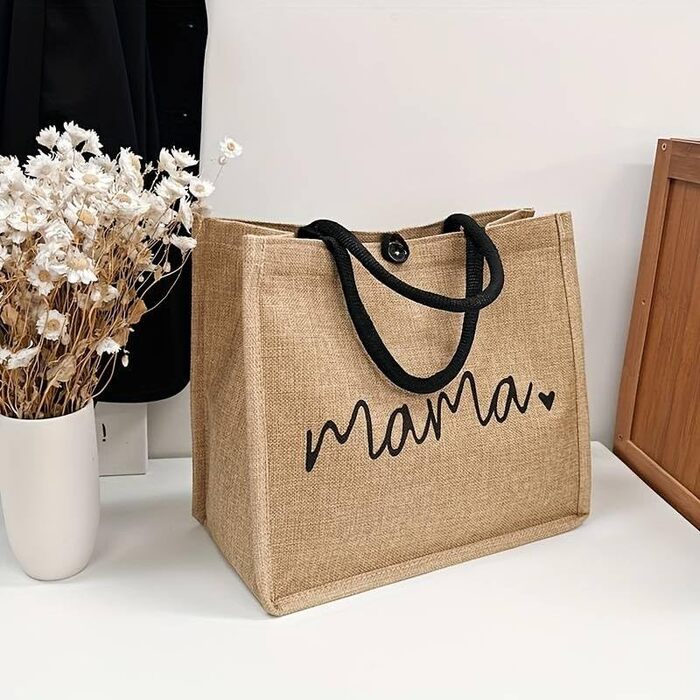 Джутова сумка з літерним принтом Mama - практична сумка для покупок/стильна іменна джутова сумка для шопінгу/ідеальний подарунок на День матері/іменна джутова сумка/джутова сумка для шопінгу/сумка для мами