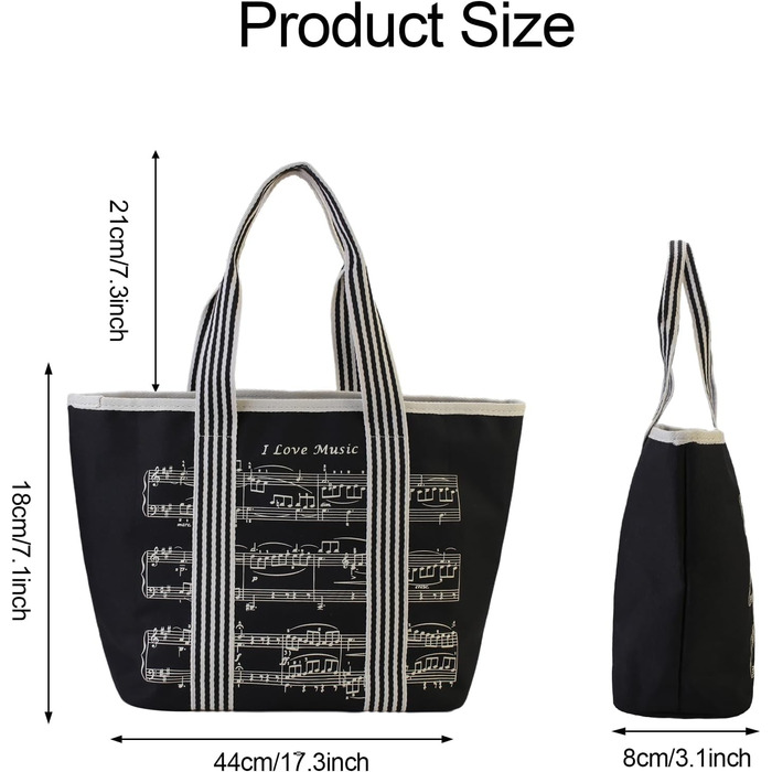 Музична сумка KingPoint музична тематична сумочка плечова сумка для покупок багаторазова багатоцільова сумка для нот для любителів музики подарунки сумочка скрипковий ключ