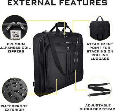 Сумка для костюмів до 3 костюмів, сумка для ручної поклажі для кожної ділової поїздки - з регульованим плечовим ременем і декількома кишенями для додаткових предметів (чорна)