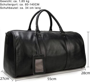 Дорожні сумки Чоловіча сумка вихідного дня з натуральної шкіри великої місткості Дорожня сумка Унісекс Вінтажна сумка для ручної поклажі Сумка вихідного дня на ніч 01 9423-чорний
