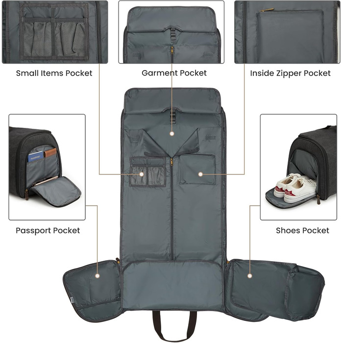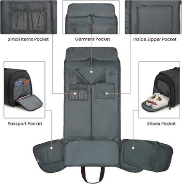 Унісекс 2-в-1 конвертована сумка для одягу Полотняна сумка для одягу Сумка для костюма Сумка для одягу з туалетним пакетом для подорожей Короткі відпустки Ділові поїздки Зберігання Чорний