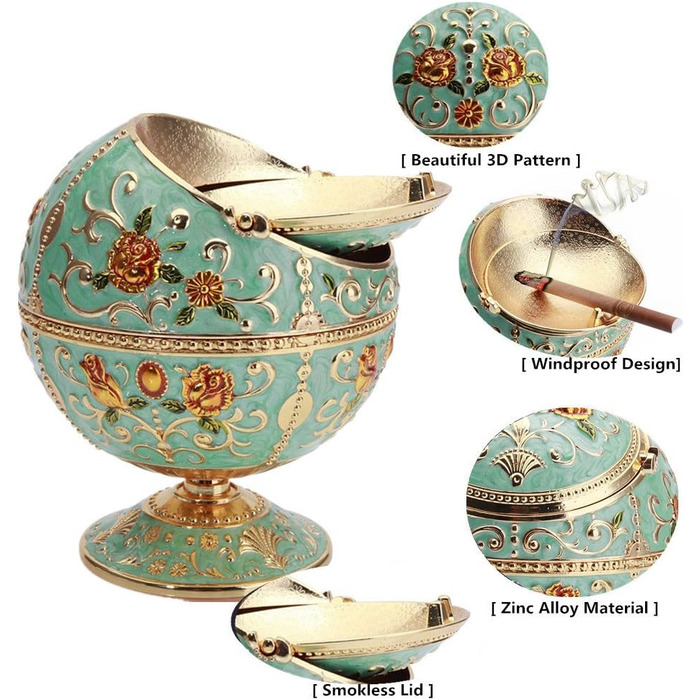 Вінтажна вітрозахисна попільничка для сигар з кришкою Портативна попільничка для сигарет та усунення запаху для зовнішнього та внутрішнього використання, ручний штампований візерунок приємний подарунок для чоловіків та жінок (світло-зелений)