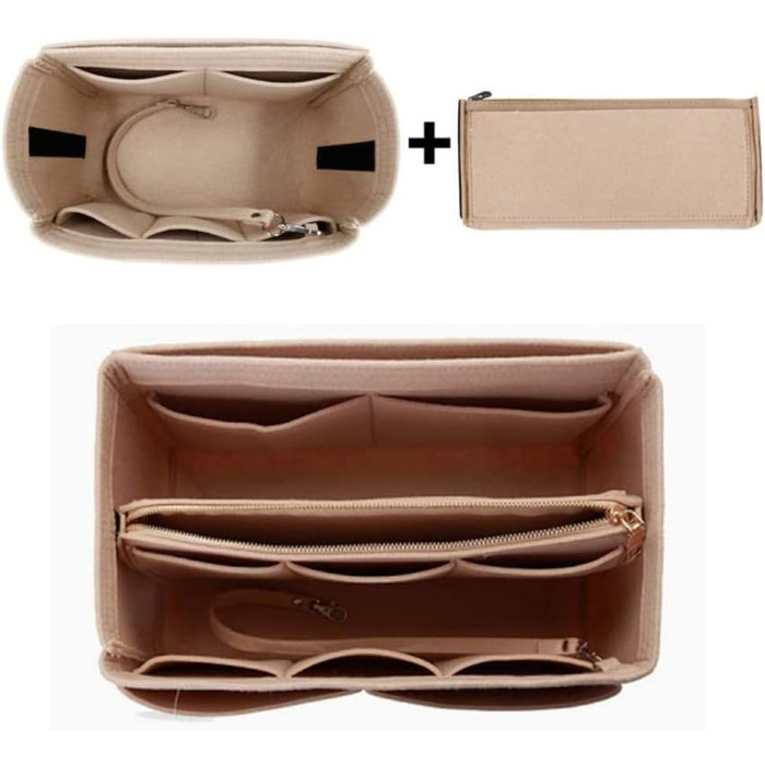 Організатор для сумочки Coyanyu, 2 в 1 сумка в сумці на блискавці Повстяна сумка-органайзер для сумочки з косметичкою та брелоком для жінок, бежевий середній