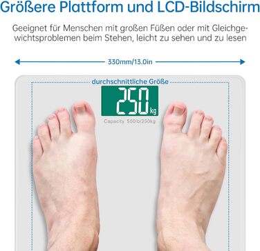 Цифрові ваги для ванної кімнати Lepulse S5 250 кг з вагою та ІМТ, розумні ваги для тіла з синхронізацією додатків через Bluetooth, ваги для людей з надширокою платформою срібла