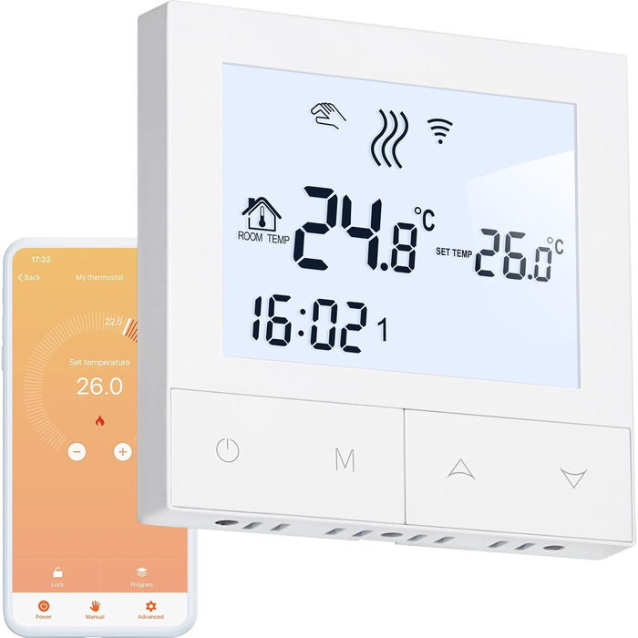 Цифровий для електричної теплої підлоги Кімнатний термостат Intelligent Heating Thermostat Compatible Alexa, Google Home, 16A TDS72WIFI-EP White