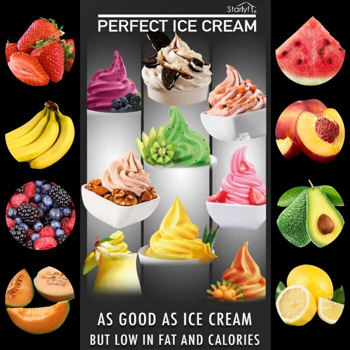 Опис Машина для виробництва морозива Starlyf Ідеальне морозиво, 100 натуральне морозиво, десерти з натурального морозива, йогурт і сорбет, машина для десертів морозива, йогуртниця, без глютену