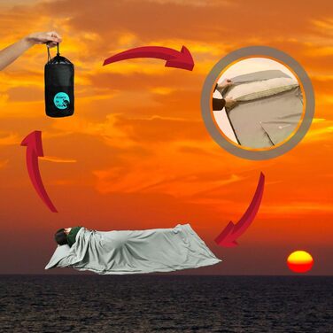 Каютний спальний мішок *ALTERA LA VITA* з новітньої мікрофібри 220х80 см з відділенням для подушки на блискавці та отвором для ніг Дорожній спальний мішок тик для рюкзака кемпінгу хатини готелю ультралегкий малий сірий