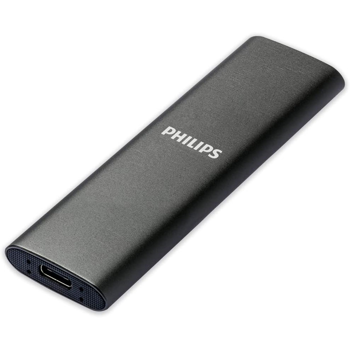 Зовнішній портативний SSD-накопичувач Philips на 2 ТБ - ультратонкий SATA Ultra Speed USB-C, швидкість читання до 550 МБ/с, алюміній