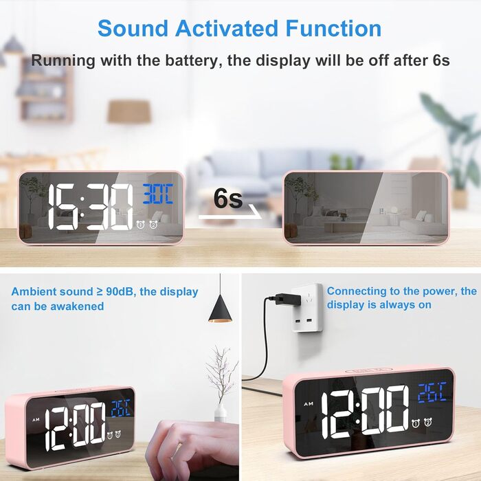 Голосове керування: Дисплей автоматично світиться при звуках понад 90 дБ або натисканні кнопки "Snooze / Light".