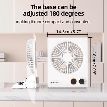 Міні-настільний вентилятор VEMONT, USB-вентилятор, акумуляторний вентилятор 5000 мАг, портативний вентилятор із можливістю нахилу на 180 з дистанційним керуванням, плавна швидкість, сильний вітер, тихі підвісні вентилятори