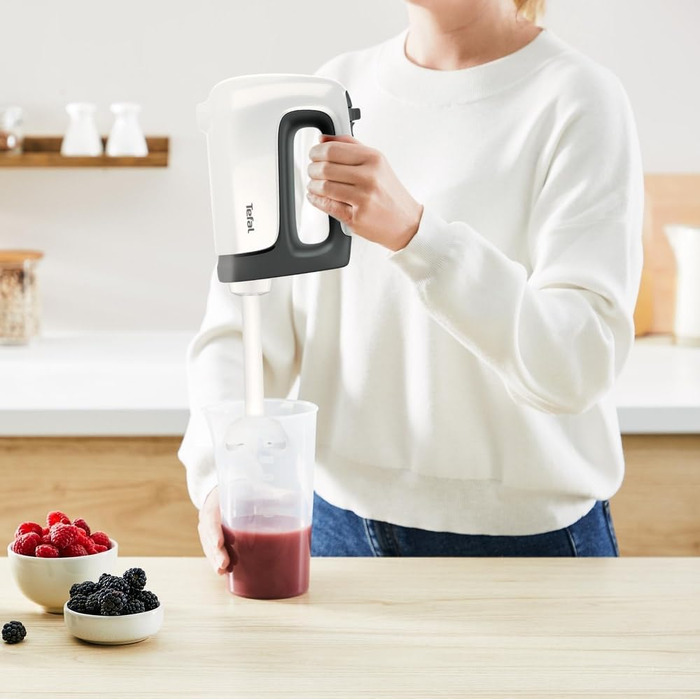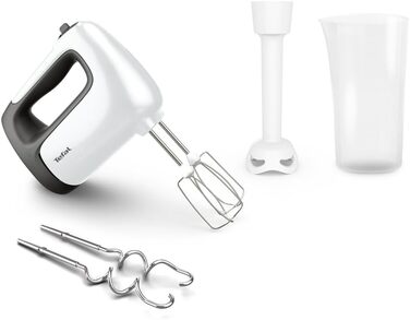 Ручний міксер Tefal HT4611 Prep'Mix 500 Вт 5 Кнопка ковзання швидкостей турбо З аксесуарами 2 вінчики/2 гачки для тіста/блендер/мірна чашка Білий/Чорний