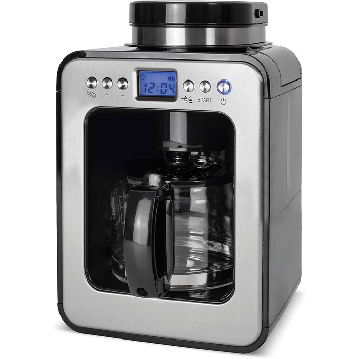 Дизайнерська кавоварка з кавомолкою, 4 чашки кави, також підходить для порошку попередньо меленої кави, знімний механізм заварювання та подрібнення, РК-дисплей, таймер, функція збереження тепла З РК-дисплеєм і таймером