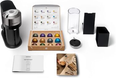 Кавова капсульна машина Nespresso Krups XN910C Vertuo Next Резервуар для води 1,1 л Розпізнавання капсул за штрих-кодом 6 розмірів чашок Функція вимкнення живлення 54 переробленого пластику Темний хром