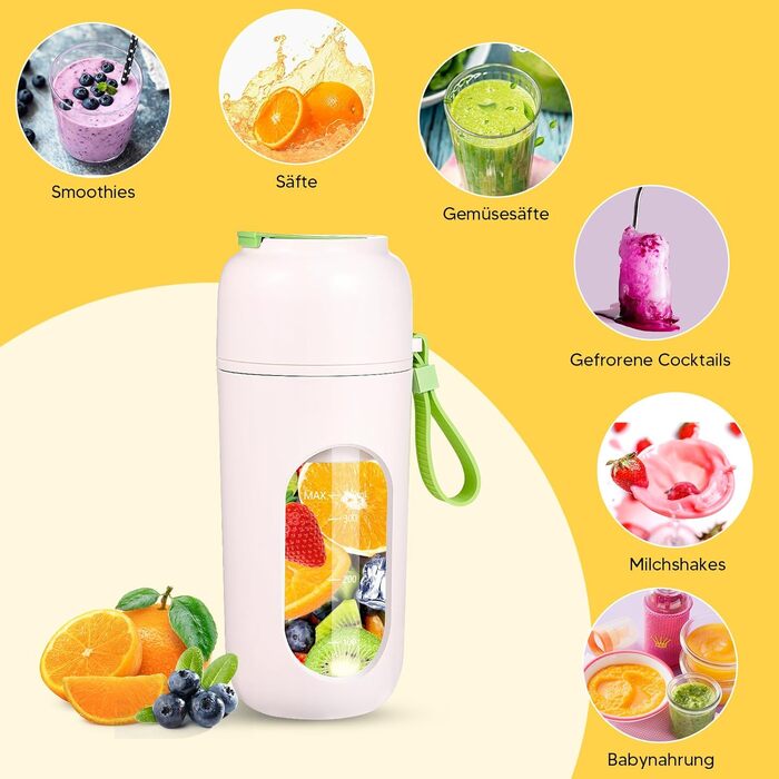 Мл - портативний блендер з 12 лезами і соломинкою для свіжовичавленого соку, смузі і коктейлів, пляшка блендера зі свіжим соком з функцією очищення, міксер для молочних коктейлів, 350