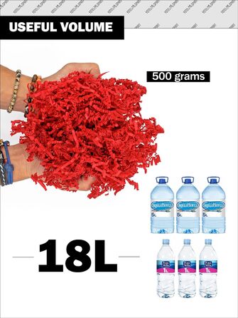 Подрібнений папір для подарункової коробки - Наповнювач для посилок, кошиків, коробок та упаковки - Захист та декор (червоний, 500г)