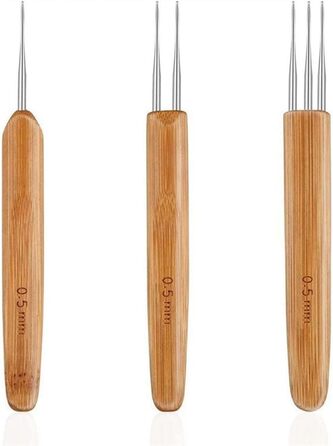 Гачок для вязання гачком 0,5 мм. Бамбукова голка для вязання гачком, гачки для дредів для волосся, набір гачків для вязання з бамбуковими ручками, ідеально підходить для дредів, кісок, перук тощо, 1 гачок, 2 гачки, 3 гачки