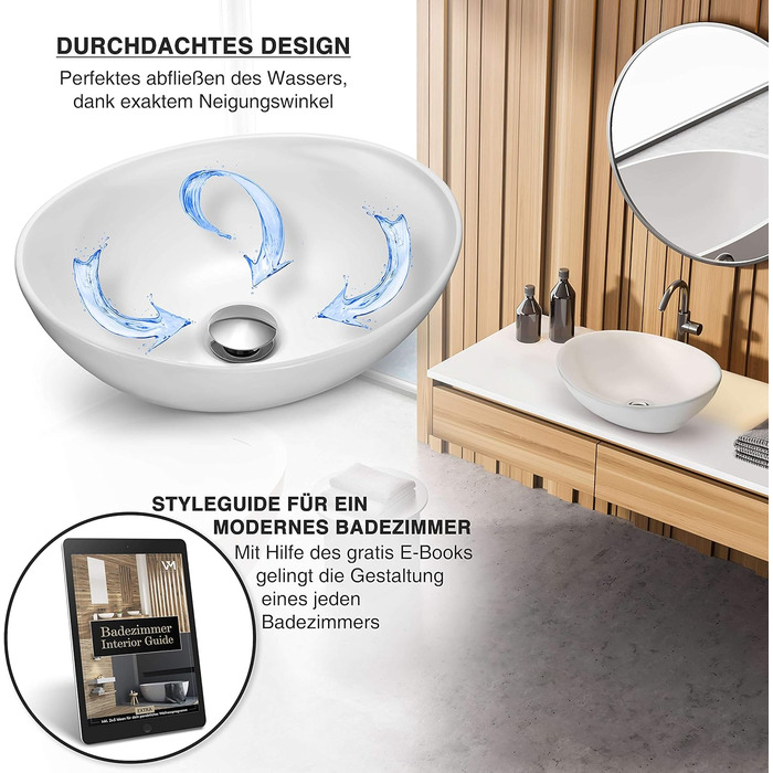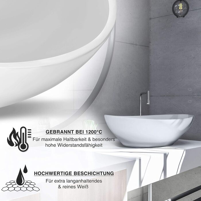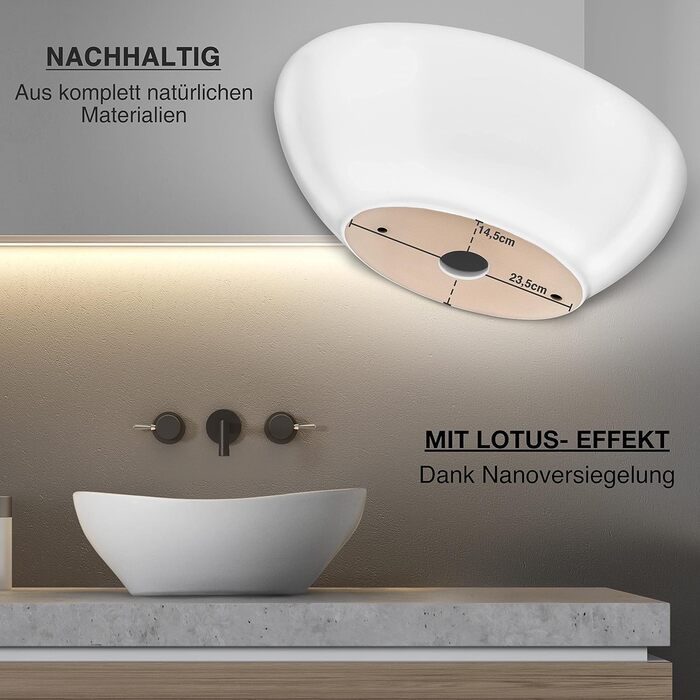 Овальний умивальник преміум-класу з ефектом лотоса Умивальник на стільницю для ванної кімнати та гостьового туалету Лоток для миття без отвору для крана і без переливу Стільниця Pure White 41 x 33 x 14,5 см Керамічна чисто біла