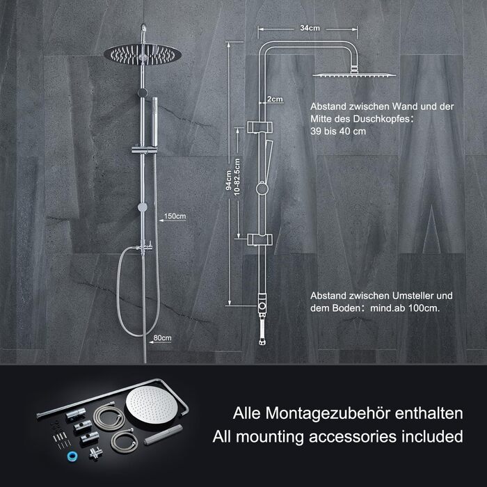 Душовий гарнітур Grbach з нержавіючої сталі без змішувача, душова система з тропічним душем, душовий набір, ручний душ, верхній душ квадратний 20x20см (YT-D30CP, хром)