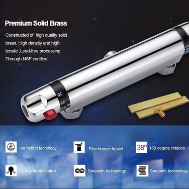 Змішувач для душу Namuoto Змішувач для душу Термостатичний термостат для душу, термостатичний змішувач для душу з ключем безпеки 38C, змішувач змішувач термостатичний Laiton Chrome (кругла ручка)