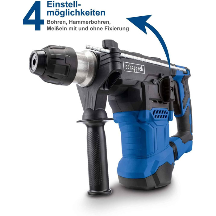 Перфоратор Scheppach SDS-Plus 4 в 1 DH1500 Plus 1500 Вт / відбійний молоток 7 Дж 6 швидкостей 0-920 об/хв 4250 ударів на хвилину з антивібраційною ручкою 32 мм свердління вкл. аксесуари та кейс