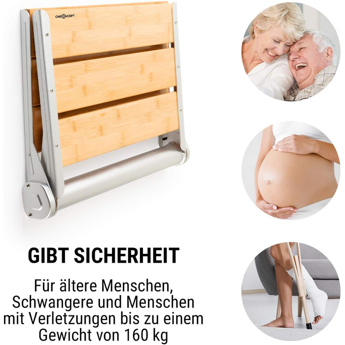 Сидіння для душу oneConcept - відкидне сидіння з бамбуковим сидінням, підвіска з алюмінієвого сплаву, вага 160 кг, в т.ч. монтажний матеріал, тип (Arielle Deluxe, коричневий)