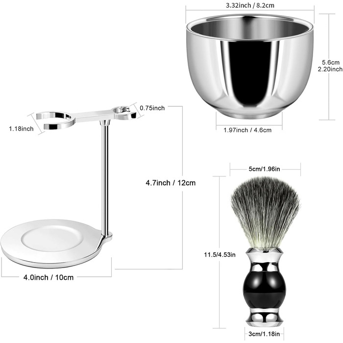 Набір щіток для гоління GRUTTI 3 в 1 преміум класу, безпечний тримач для бритви, щіткотримач, щітка для гоління Imitation Badger hair, чаша для гоління з нержавіючої сталі, подарунковий набір для чоловічого гоління чоловічий набір тримачів для бритви Silv