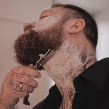 Набір для догляду за голінням - з небезпечною бритвою, футляром, щіткою для гоління, милом для гоління, мискою для гоління, маслом для гоління та серветкою для гоління - ідеальний набір для гоління - ідея подарунка Чоловіче дерев'яне кафе
