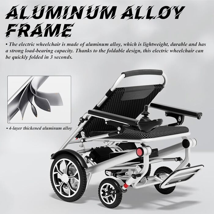 Електрична складна електрична інвалідна коляска Bueuwe, електрична інвалідна коляска зі знімною літієвою батареєю 12А, електричні інвалідні візки для квартири, вантажопідйомність 150 кг, 14,9 кг