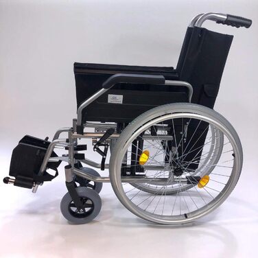 Складаний інвалідний візок TMB з наскрізною системою від Trendmobil GmbH, ширина сидіння 48 см з барабанним гальмом для супроводжуючої особи. Інвалідний візок завжди оснащений двома (правий + лівий) Гальма стоянки в комплекті. HMV 10.50.02.0110 Зі своєю вагою від 16,9 до 18,2 кг (без підніжок) в залежності від ширини сидіння і максимально можливою стійкістю, складаністю і привабливим зовнішнім виглядом, він встановлює новий стандарт! У стандартну комплектацію з системою наскрізної осі (знімні задні колеса) і п'ятковим ременем для литки. Міцна сталева рама і легкий механізм складання з подвійною поперечною стійкою. Безпечне і легко регульоване стоянкове гальмо. Легко складається для транспортування та зберігання. Висота сидіння регулюється в 2 етапи. Поворотні і знімні підніжки. Поворотні бічні панелі. Залишається в згорнутому стані. Поліуретанові шини (захищені від проколів). Технічні дані: довжина 80 см (без підніжок), ширина = ширина сидіння + 18 см, висота 95 см, висота сидіння 47 або 50 см, глибина сидіння 42 см, вага 16,9 - 18,2 кг в залежності від ширини сидіння без підніжок, вантажопідйомність 135 кг, колір сріблястий Інформація щодо визначення ширини сидіння: Виміряйте ширину сидіння на початку стегон. Якщо ви додасте по 2 см вправо і вліво, ви визначили ширину сидіння. Приклад: ширина сидіння 43 см + 4 см = ширина сидіння 47 см. Рекомендуємо замовляти сидіння шириною 48 см.