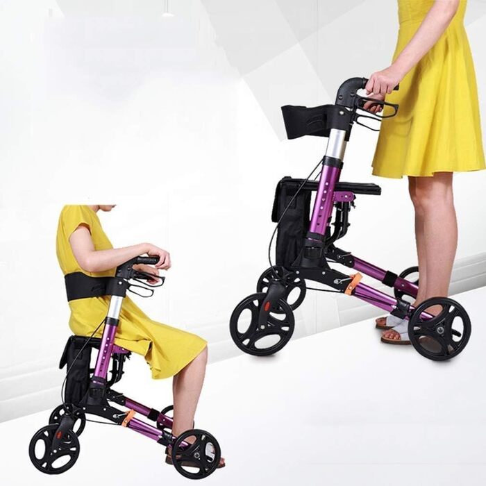 Опис Роллер для покупок, допоміжний засіб для ходьби для людей похилого віку, допоміжний засіб для ходьби, легкий візок для пересування, коляска, розбірна, з сидінням і кошиком, 4 колеса, для людей похилого віку