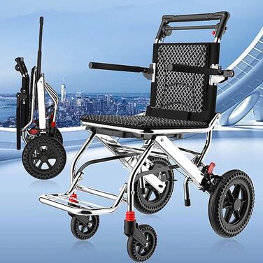 Опис Легке складне інвалідне крісло, розбірне портативне інвалідне крісло з дишлом/сумкою для перенесення, нове оновлення, надлегке транспортне крісло для дорослих A
