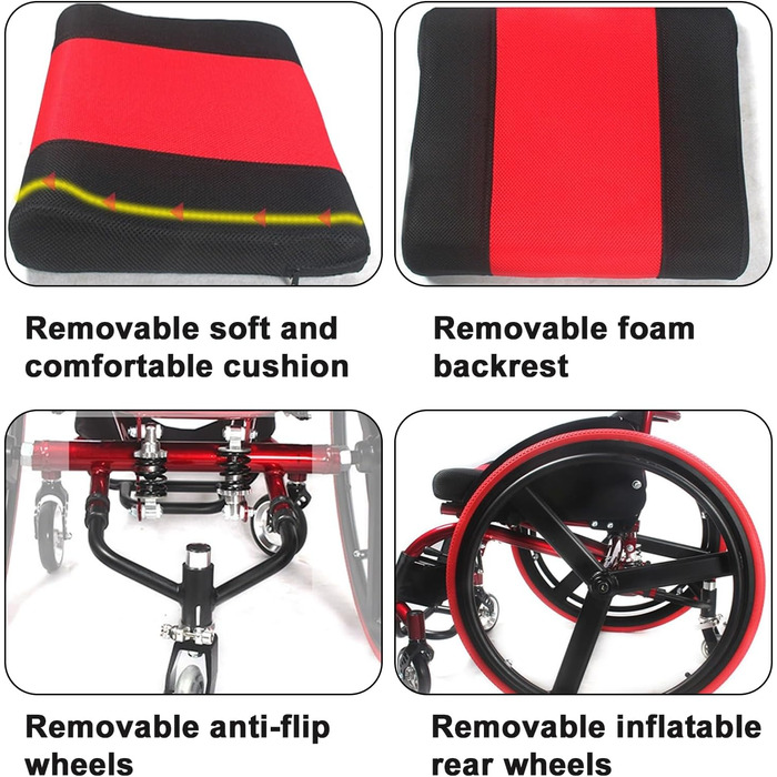 Опис Спортивна інвалідна коляска Sunyongfly Складна легка інвалідна коляска Всюдихідна складна інвалідна коляска для дорослих підходить для підлітків, людей з обмеженою рухливістю та людей з обмеженими можливостями (64X80, 64X80X73 см (25.31.4X28.7 дюймів)