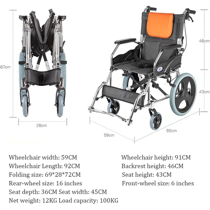 Практичний і зручний для перенесення, його можна взяти з собою в літак і просто покласти в багажник автомобіля і переміщати, як предмет багажу. Заднє гальмо, безпечне та надійне. Підходить для використання в подорожах, на вулиці, в офісі, супермаркеті, школі, лікарні, ресторані тощо. Ножну педаль можна скласти: користувач може безперешкодно підніматися і спускатися в повітрі. Інформація про продукт: Назва продукту: ручний повітряний. Основа ручки: 900 мм. Ширина спинки: 420 мм. Ширина сидіння: 460 мм. Висота спинки: 460 мм. Висота сидіння: 510–480 мм. Глибина сидіння: 400 мм. Вантажопідйомність: 100 кг. Суцільне переднє колесо: 7 дюймів. Суцільне заднє колесо: 24 дюйми. Розмір упаковки: 1000 х 260 х 935 мм.