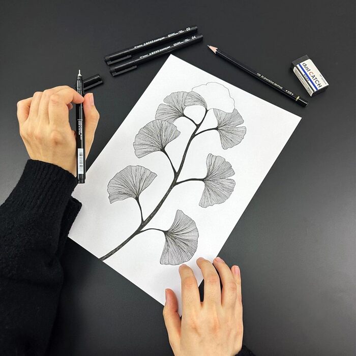Опис Ручка для малювання Tombow Fineliner MONO, набір Bundle, пігментне чорнило, водо- та світлостійкість, для ескізів, для ілюстрації та малювання, чорна, набір з 8 шт.