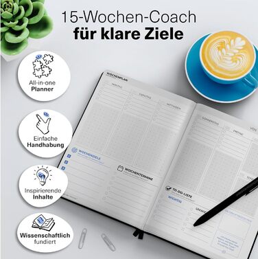 МОТИВАЦІЙНИЙ РУХ Журнал успіху Щоденний планувальник В т.ч. навчальна платформа, мислення та робочий зошит Підвищує концентрацію уваги та продуктивність Журнал Планувальник DIN A5 в т.ч. відеокурс Досягнення цілей без кулькової ручки