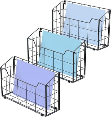 Великий тримач для журналів Univivi Стінка, Тримач для газет Настінний металевий для поштового листа формату А4, Тримач для брошури Стіна та стіл у кухні Вітальня Офіс Ванна кімната, Стійка для журналів Стіна чорна -3 упаковки