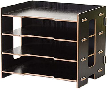 Лоток для документів Дерево, Настільний органайзер Лоток для зберігання листів Відсіки для зберігання Штабельовані канцелярські приладдя Лоток для паперу для паперу формату А4 Система зберігання папок Організуйте 33 x 27 x 24 см, Чорний