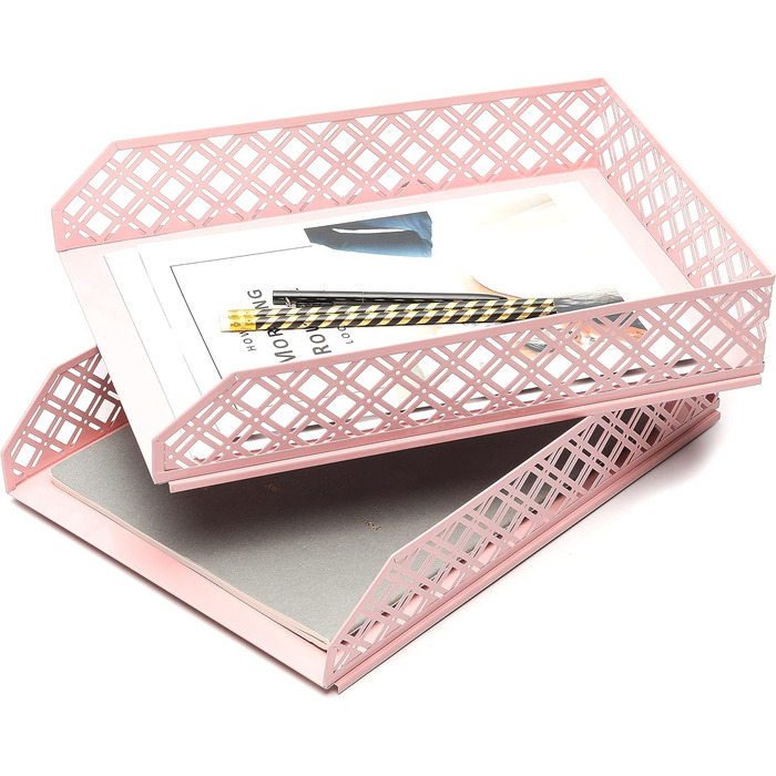 Лотки для листів EXERZ 2 шт. и Штабельований сортувальник паперу/Настільний органайзер/Лоток для файлів для столу - Металева стійка для файлів із дротяної сітки - Офісні, шкільні, домашні навчальні лотки 2pk Світло-рожевий