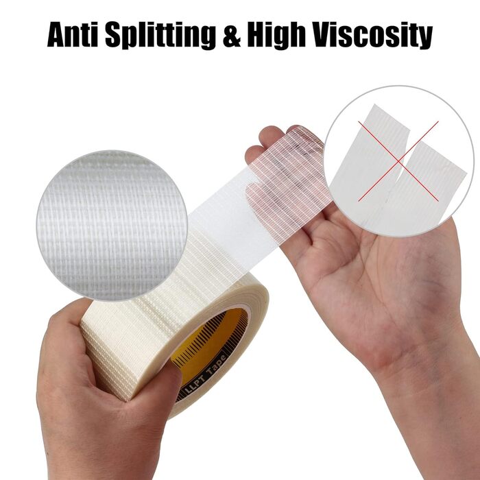 Нитка стрічка Обв'язувальна стрічка Армована скловолоконна стрічка 19 мм x 33 м 4 рулони Надміцна пакувальна стрічка для транспортування пакетів транспортних коробок (TGT1933TT04)