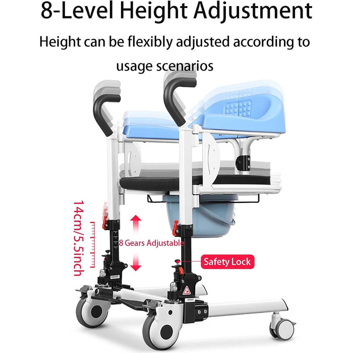 Опис Ліфт для пацієнтів, Інвалідні візки у ванній кімнаті, Крісло для перенесення пацієнтів, Підйомник для пацієнтів, Допомога для перенесення, Транспортний інвалідний візок, Двигун з розділеним сидінням на 180 для літніх людей, інвалідів, літніх чоловіків