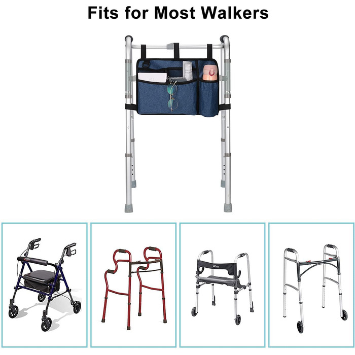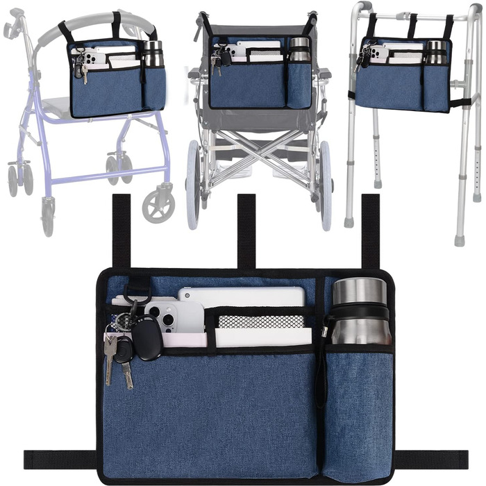 Опис Сумка Walker з тримачем для чашки, водонепроникна сумка для інвалідного візка Складні ходунки Кошик для аксесуарів для інвалідних візків, роликів, самокатів, синій