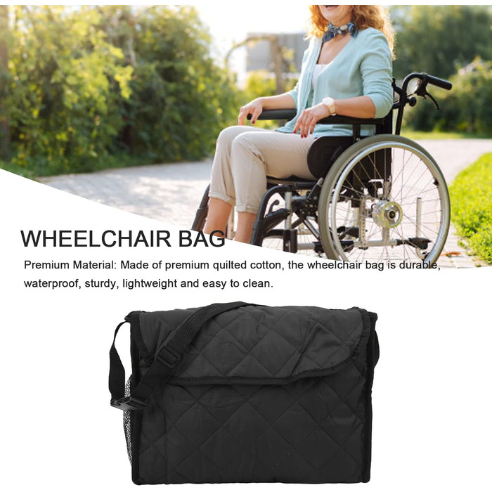 Сумка для зберігання інвалідного візка TOPINCN для підвішування, сумка для інвалідного візка, велика сумка для ходунків, багатофункціональний аксесуар для підлокітника інвалідного візка для візка для скутера (чорний)