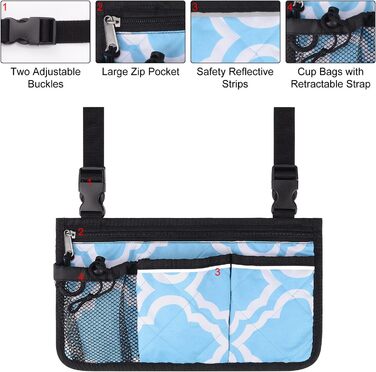 Сумка для інвалідного крісла supregear для підлокітника, 6 кишень, сумка-органайзер Walker зі світловідбиваючими смугами та тримачем для пляшок для кожного інвалідного візка, самокат, допоміжний засіб для ходьби, аксесуар для перенесення ролика, синій