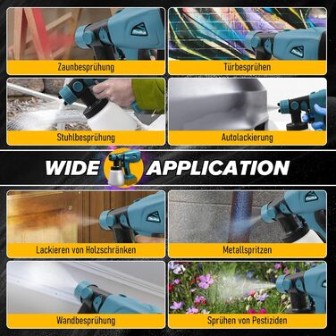 Акумуляторна фарборозпилювальна система MaxAwe, електричний фарборозпилювач на акумуляторах Makita 18V, фарборозпилювач з 5 насадками та 3 варіантами розпилення, фарборозпилювач для фарбування стін та садового паркану (без акумулятора)