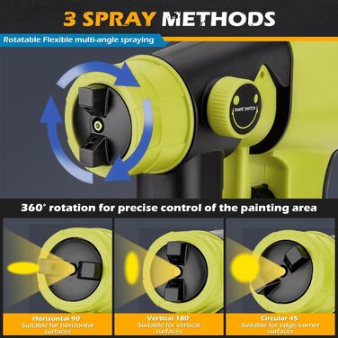 Опис Система розпилення фарби Електричний, сумісний з акумулятором Ryobi 18V, оновлений розпилювач фарби HVLP з 4 соплами, 3 формами розпилення та ємністю для фарби 1000 мл, для фарбування стін та садової огорожі (без акумулятора) LEMON GREEN