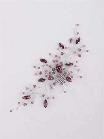 Вишуканий гребінець для волосся, прикрашений блискучими стразами та кристалами, стане яскравим акцентом у вашому образі. Насичений бордовий відтінок поєднується зі сріблястою основою, створюючи розкішний та елегантний стиль. Завдяки ручній роботі кожна деталь виглядає бездоганно, додаючи прикрасі особливої цінності.